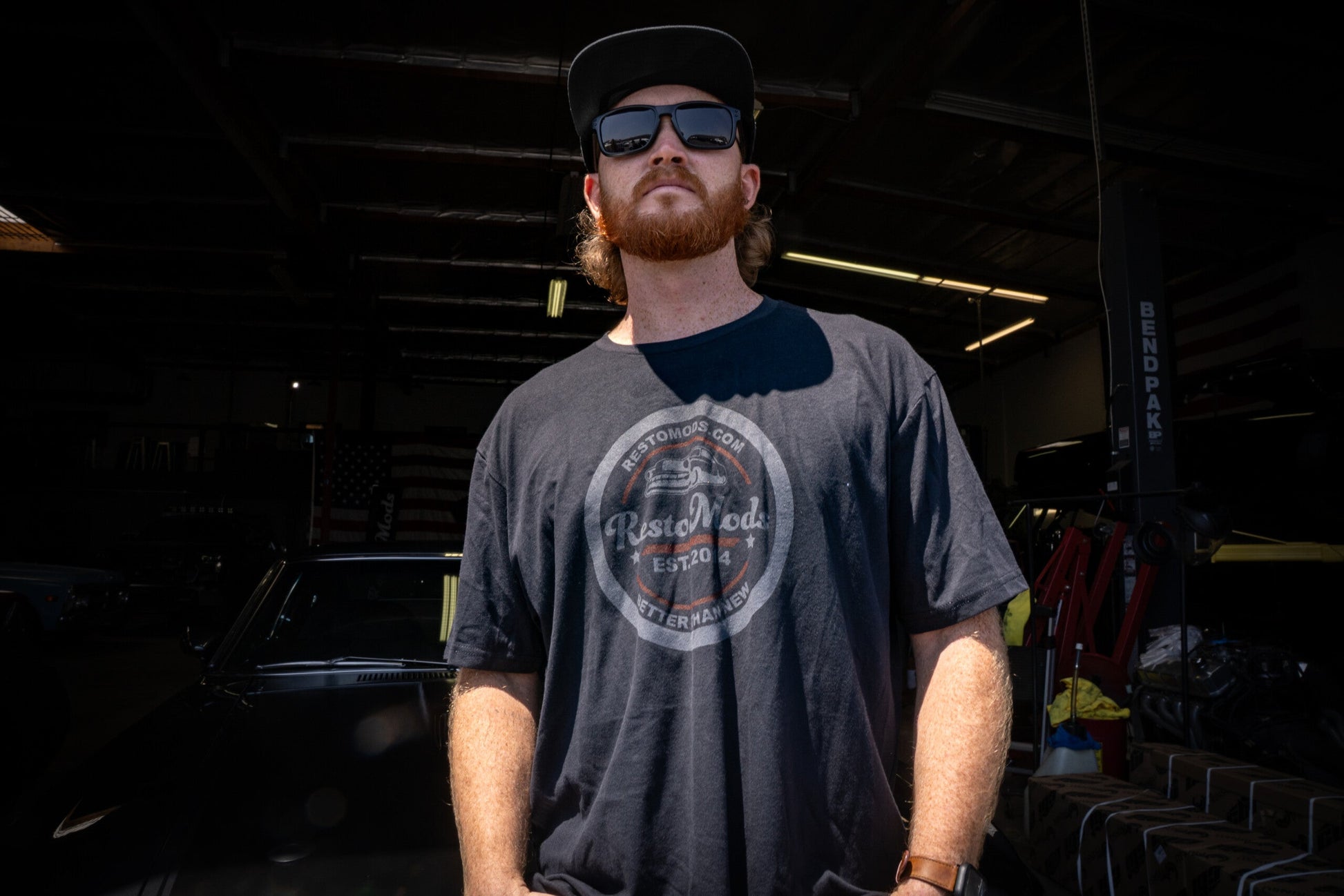 - RestoMods Logo in center of shirt